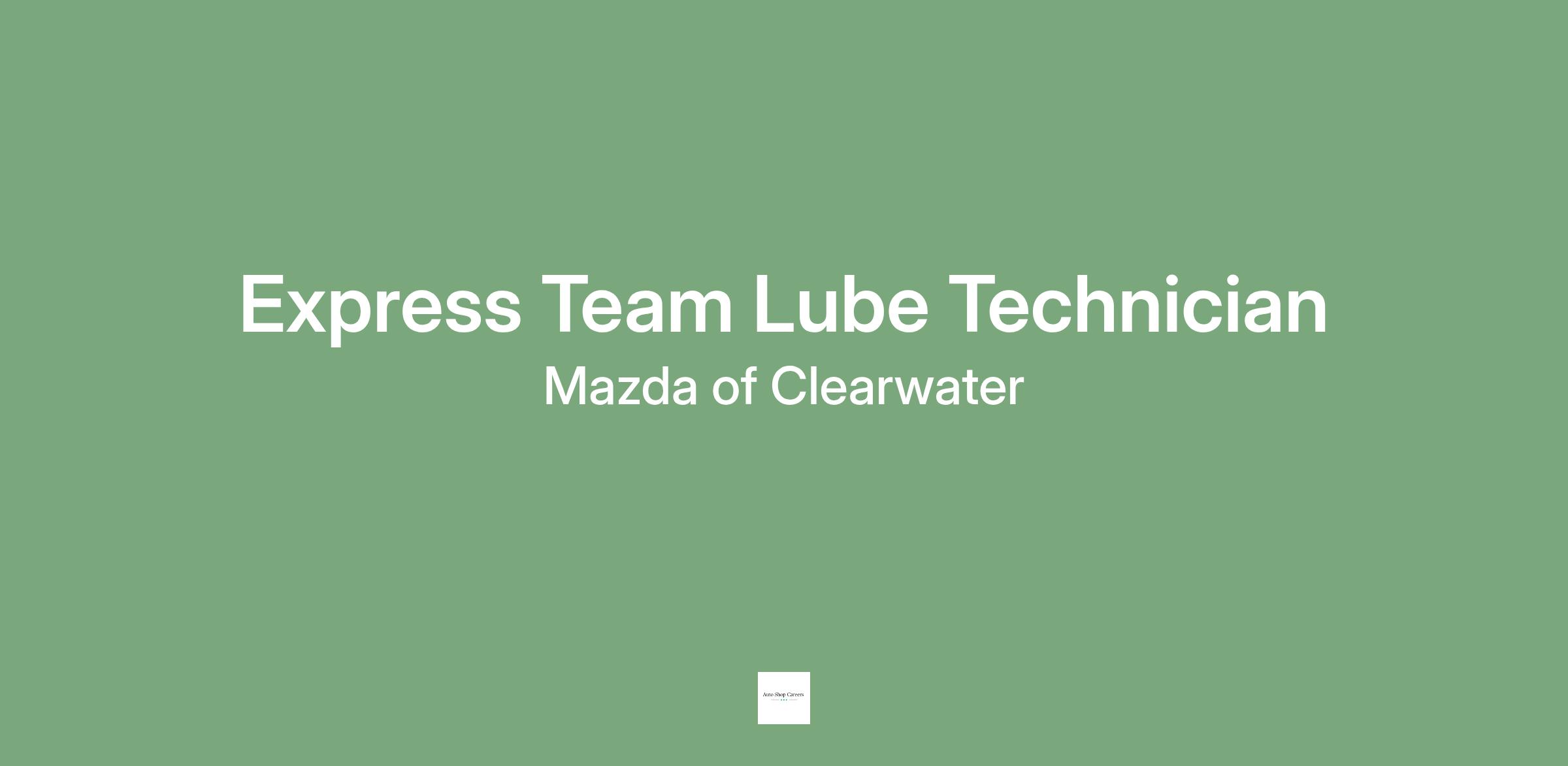 We are in need of Express Lube Technicians. You will work side by side with other technicians for support, you will be guided by our Assistant Service Manager who has over 35 years of Mazda experience to guide and build leadership skills and build a career of your own. If you are an experienced lube tech or automotive student, then this is the position for you. Let us help guide you through a career with Mazda, you put in the work and we offer the guidance and training, it is up to you and your hard work to follow the path to a great career. Positions are available now in our brand new state of the art facility.