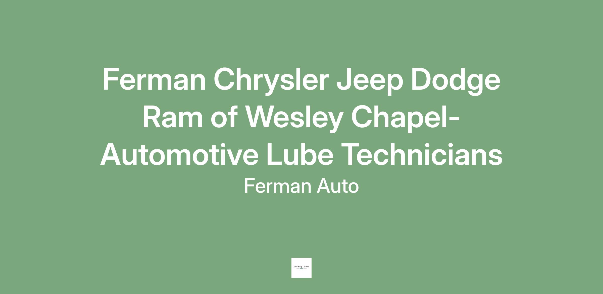 Ferman Chrysler Jeep Dodge Ram of New Port Richey is looking for Automotive Lube Technicians. Are you a skilled auto tech or someone looking to learn the trade? We have an immediate need for Automotive Lube Technicians looking for a rewarding career with our company. Would you like the chance to train and work at the dealership level and receive all of the benefits? Then Ferman CJDR of New Port Richey is looking for you!!!