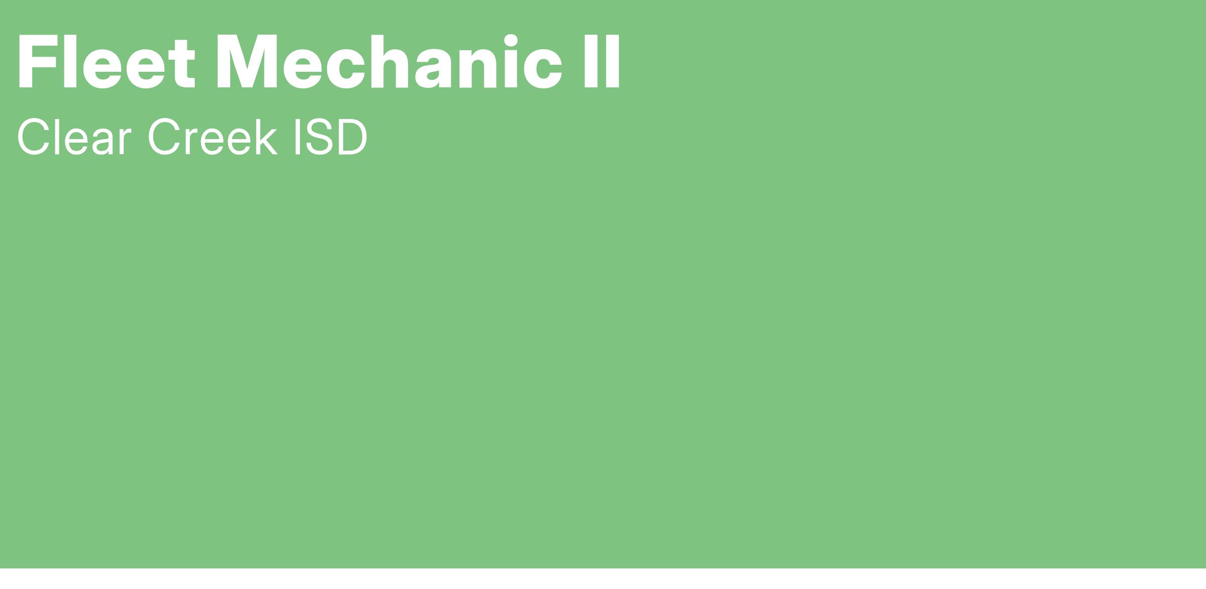 Responsible for all preventative maintenance services and repairs to ensure proper performance, safety, and reliability of vehicles for the transportation of CCISD students. Actively engage in actions that contribute to the overall mission and strategic plan of Clear Creek ISD.