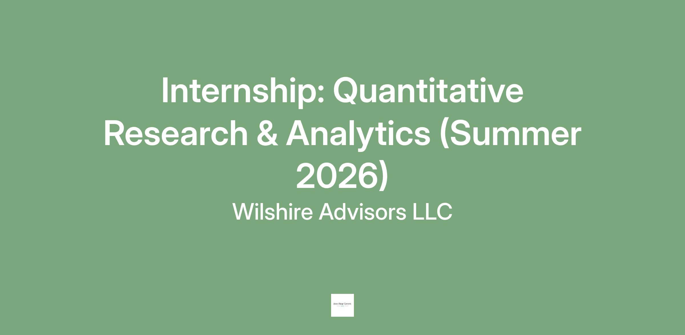 Wilshire is seeking a highly motivated Quantitative Research & Analytics Intern to join our Risk Management team for Summer 2026. This role offers hands-on experience supporting the research, development, and maintenance of risk analytics and investment systems, with exposure to real-world applications in portfolio construction, asset allocation, and risk management. Interns will work under the guidance of senior team members and collaborate with investment professionals across the firm.