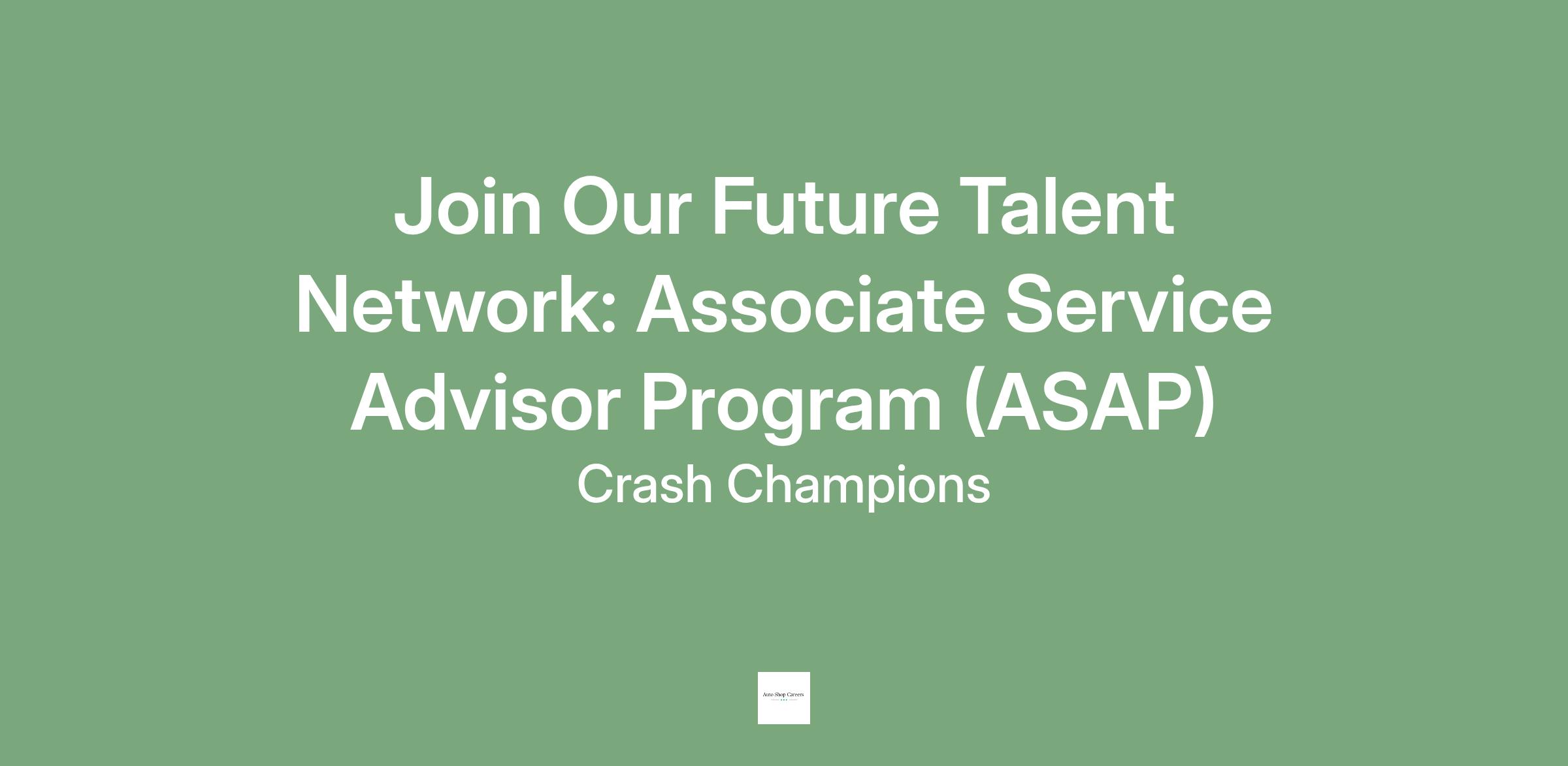 We’re building a pipeline of passionate, service-driven individuals for our Associate Service Advisor Program (ASAP)—a launchpad for those looking to start a career in the collision repair industry. Even if a role isn’t currently open in your area, you can still apply now to be considered for future openings nationwide. This is your chance to join our talent bench and be first in line when opportunities arise.
