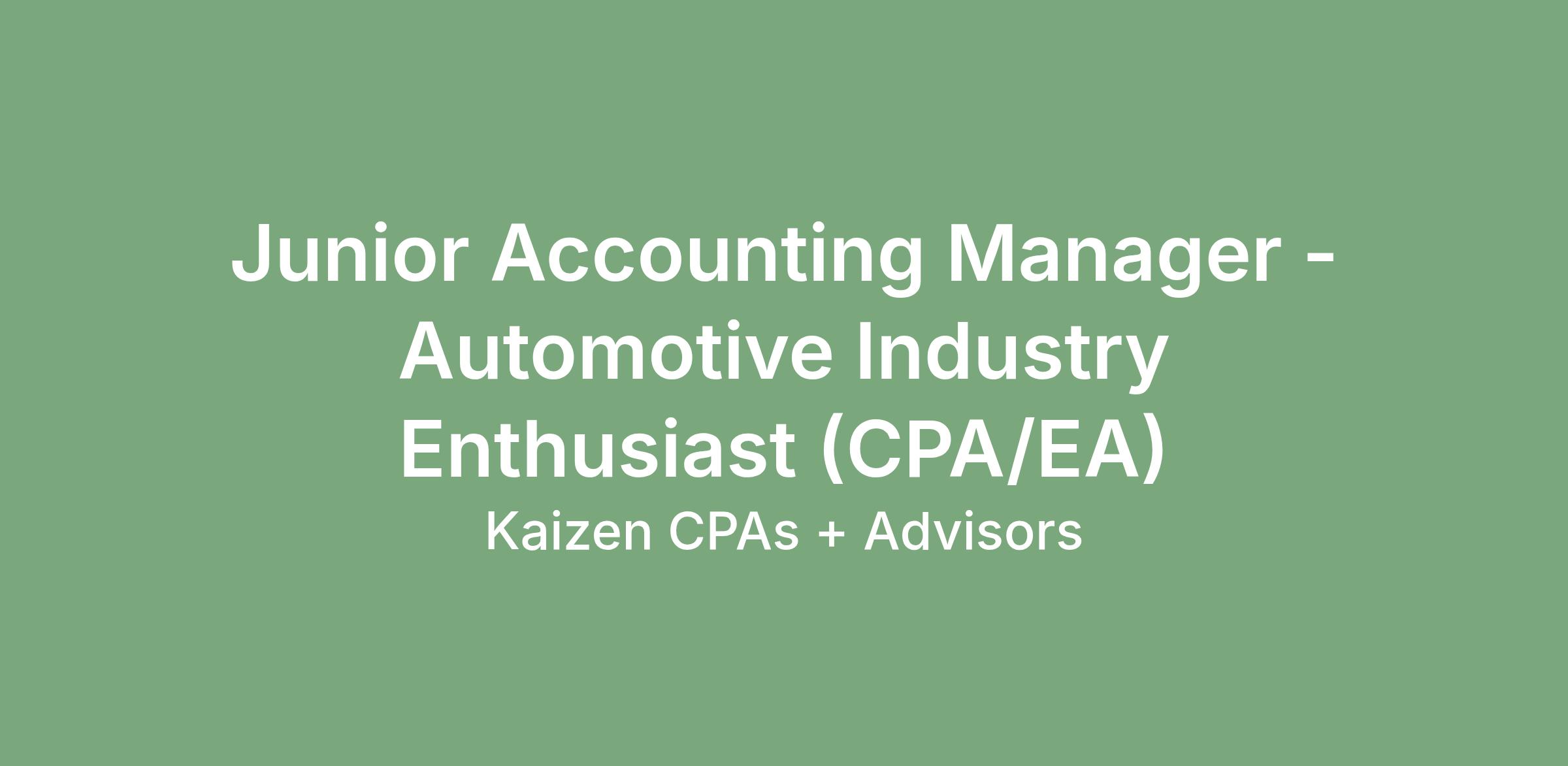 As a Junior Accounting Manager, you’ll play a key role in delivering financial expertise to our small business clients, with a primary focus on tax. You’ll prepare personal, partnership, and corporate tax returns, while gaining diverse experience in payroll, bookkeeping, financial statements, compilations, reviews, and more. While your client mix may include various industries, this role emphasizes work with clients in the automotive repair space. You'll report to the Account Manager and be part of a collaborative team that values continuous improvement.