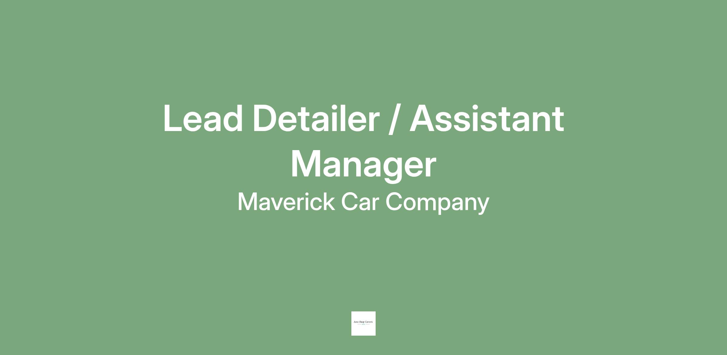 We’re looking for a Lead Detailer / Assistant Manager<\/b> to help maintain Maverick’s reputation for top -quality vehicles. This role is ideal for someone who is detail -driven, leads by example, and enjoys mentoring teammates to deliver consistent, high -quality results.