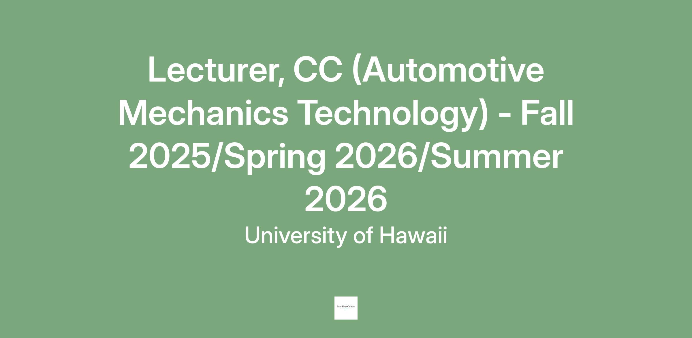 Title: Lecturer, CC (Automotive Mechanics Technology) - Fall 2025/Spring 2026/Summer 2026