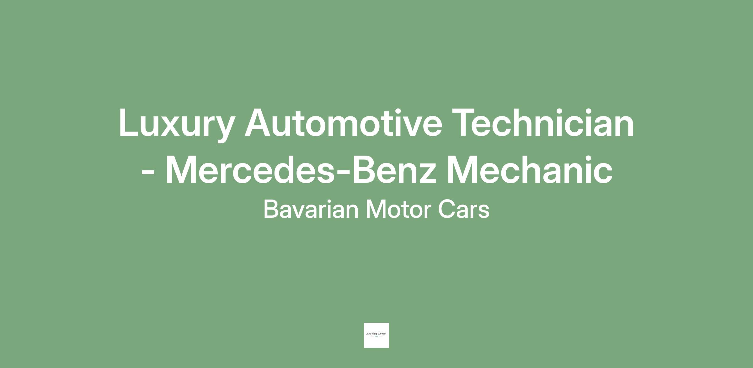 REQUIREMENTS FOR OUR LUXURY AUTOMOTIVE TECHNICIAN - MERCEDES-BENZ MECHANIC