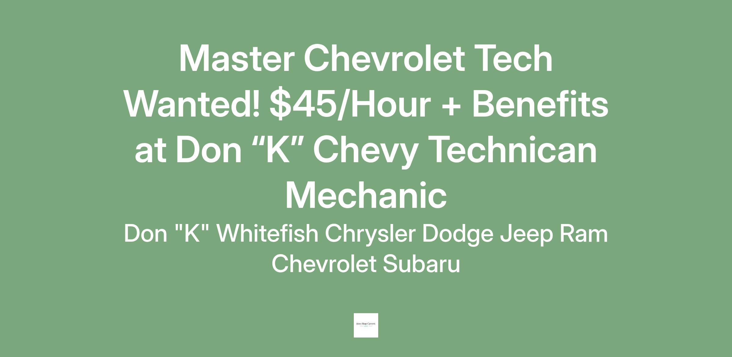 Don “K” Whitefish is proud to be an equal opportunity employer. We are committed to building a diverse, equitable, and inclusive workplace. Candidates must pass a background check and a drug screening (excludes THC and prescribed medications).