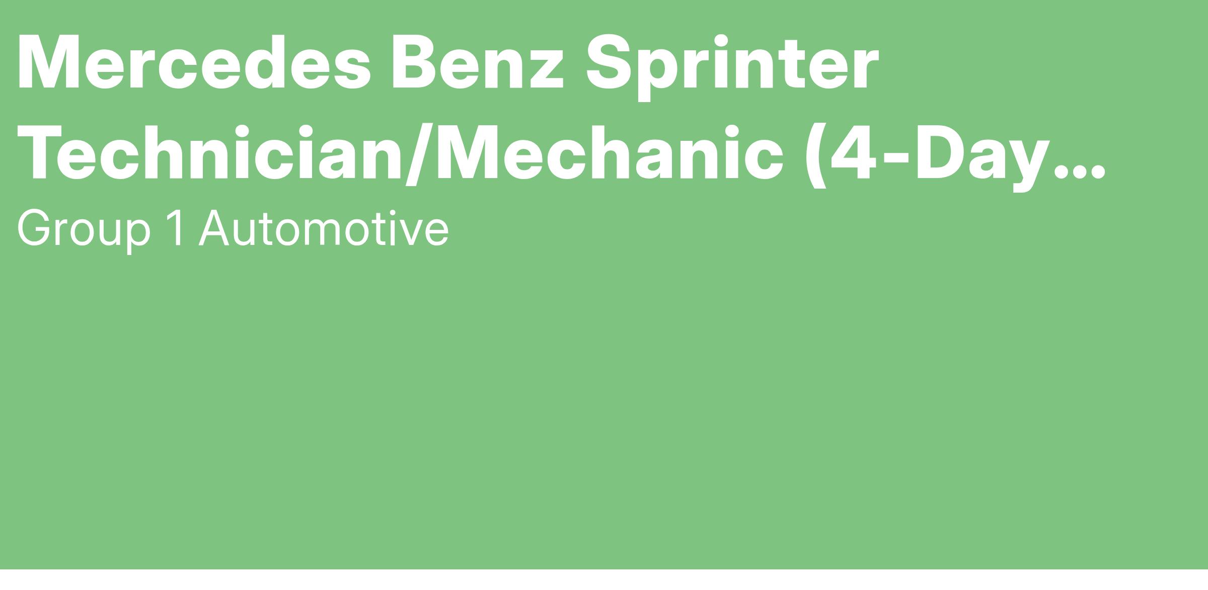 Are you an experienced Sprinter Technician ready to advance your career? Are you ready to work in a Technician focused environment with all the tools and support to maximize your earnings potential? If you answered yes than we want to meet you! You have several ways to apply so apply now!