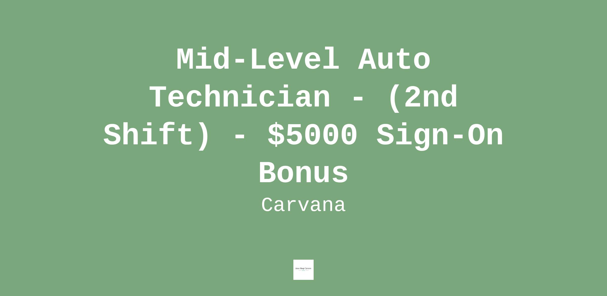 Mid-Level Auto Technician - (2nd Shift) - $5000 Sign-On Bonus
