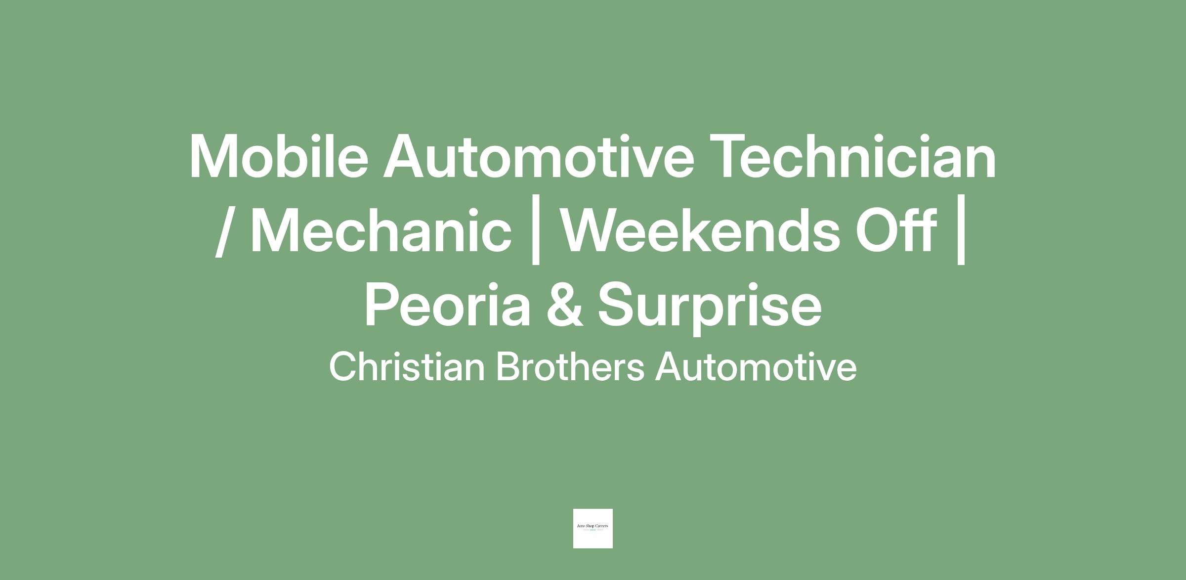 As a Mobile Automotive Technician/Mechanic at Christian Brothers Automotive, your primary responsibility is to deliver high-quality automotive repair and maintenance services directly to our guests' locations. You will operate a Christian Brothers Automotive branded mobile repair vehicle equipped with state-of-the-art technology and resources to diagnose and fix various vehicle issues.