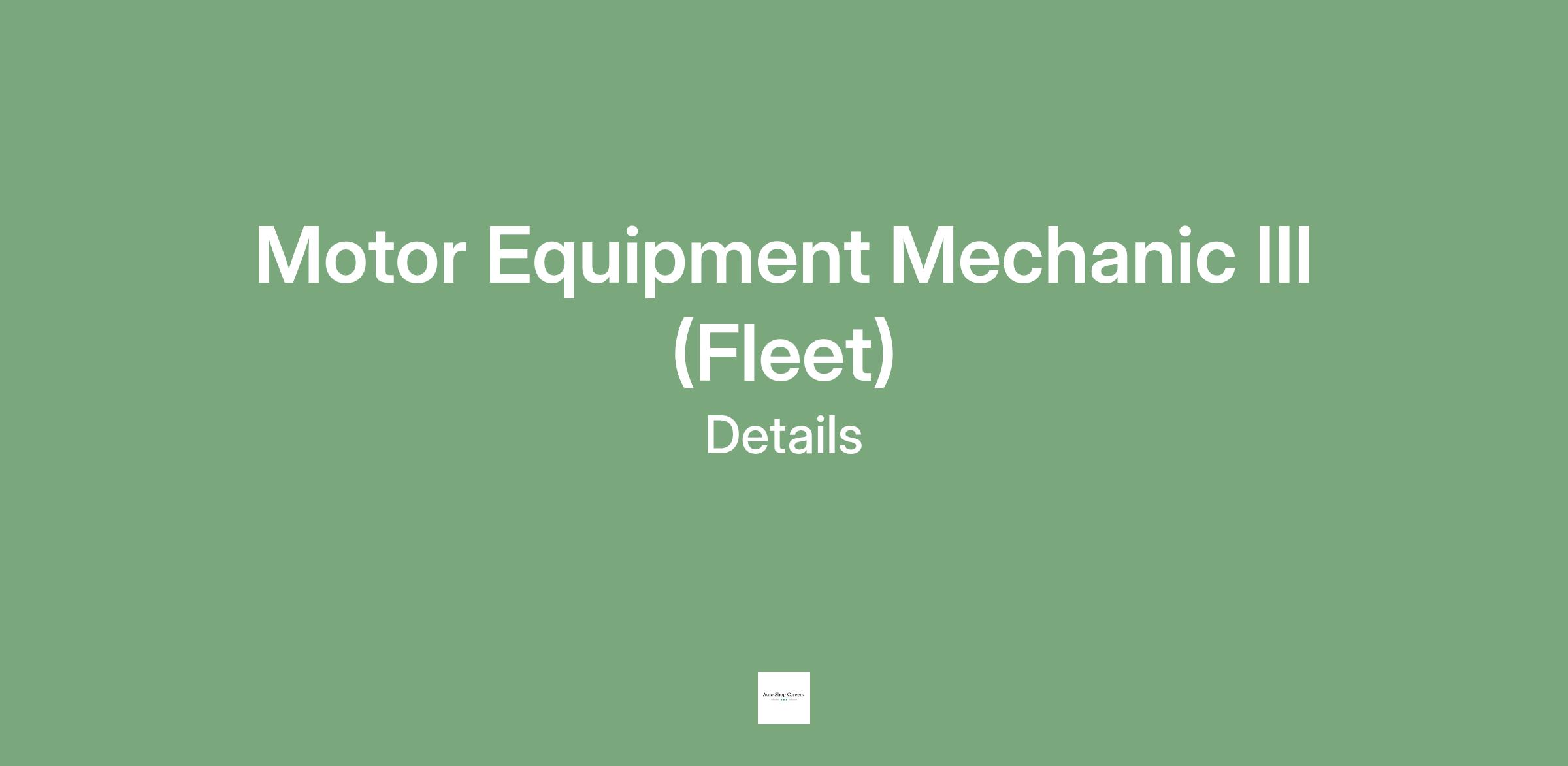 - May provide functional supervision to junior-level Motor Equipment Mechanics, skilled laborers, and storekeepers.