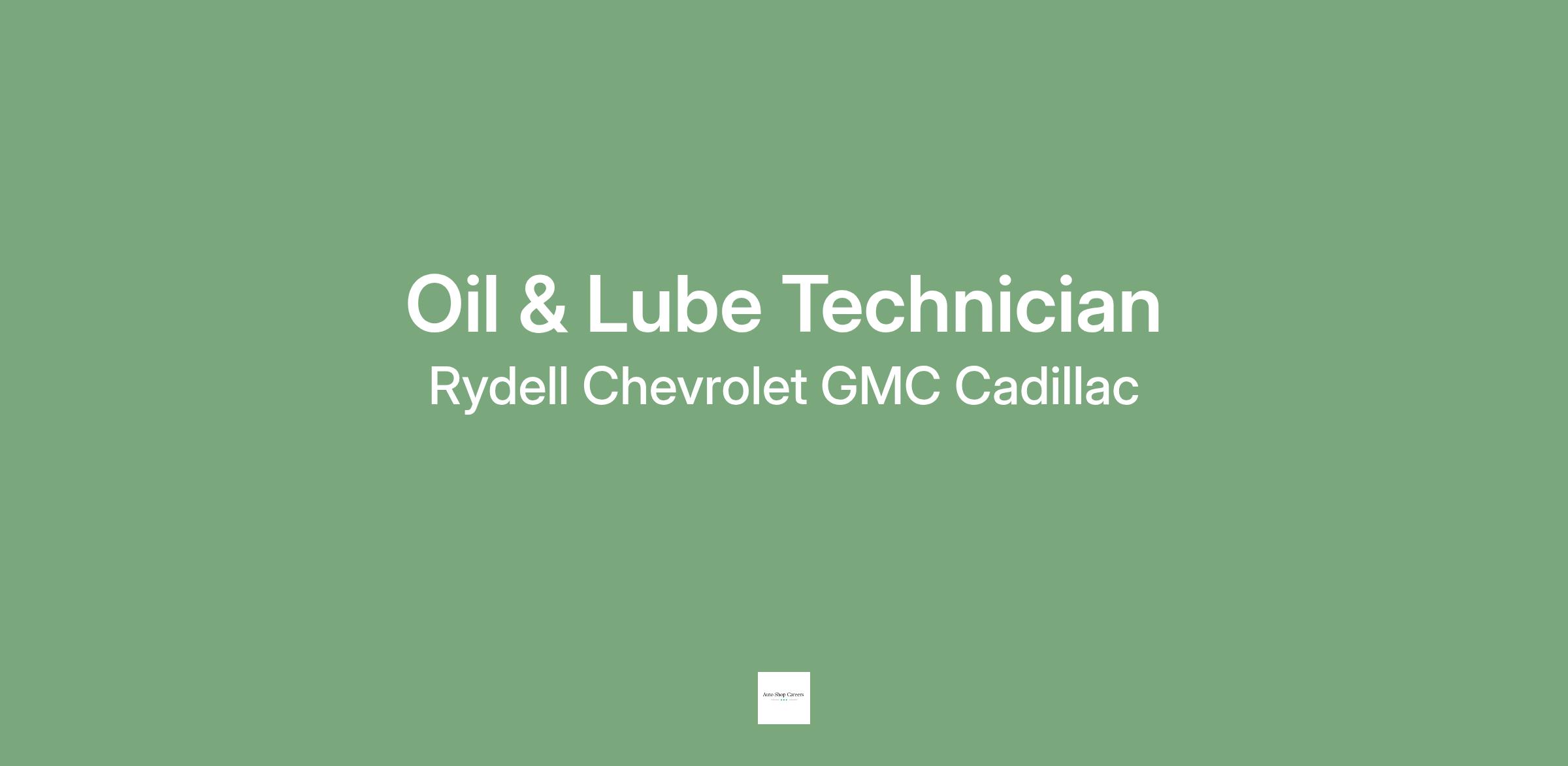 Rydell Auto Center is seeking Full-Time Oil & Lube Technicians to join our winning team. We offer the opportunity to earn while you learn.