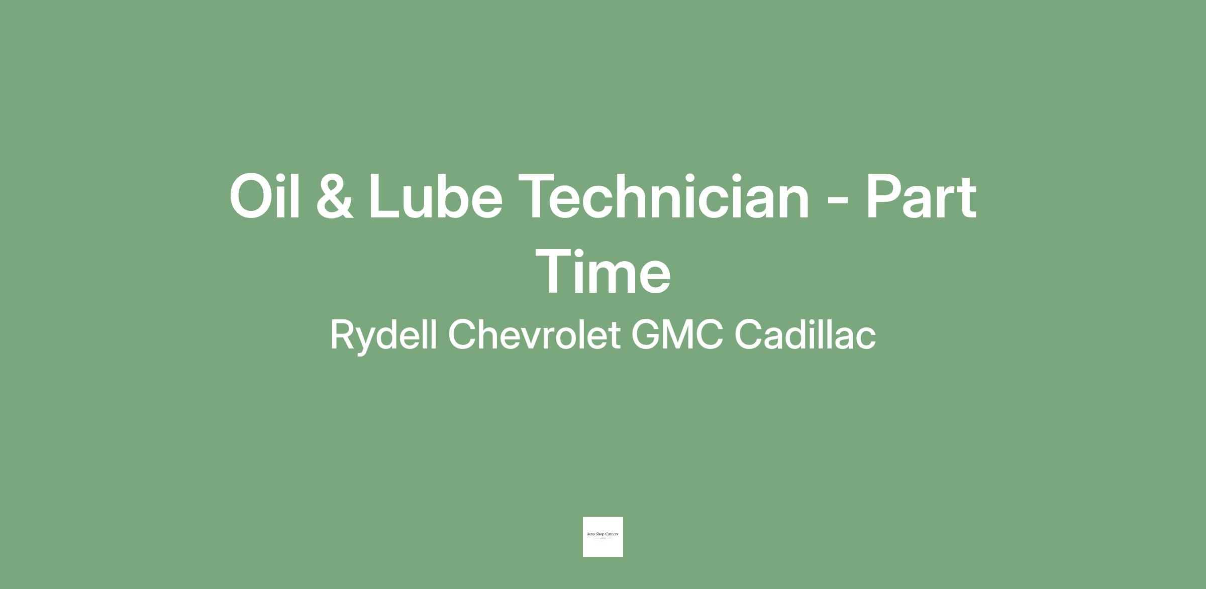 Rydell Auto Center is a growing dealership in need of Part Time talented Oil and Lube Technicians. This position will be responsible for oil changes, tire rotations and other light maintenance work. This could be the start of a great career in the field of Automotive Service.