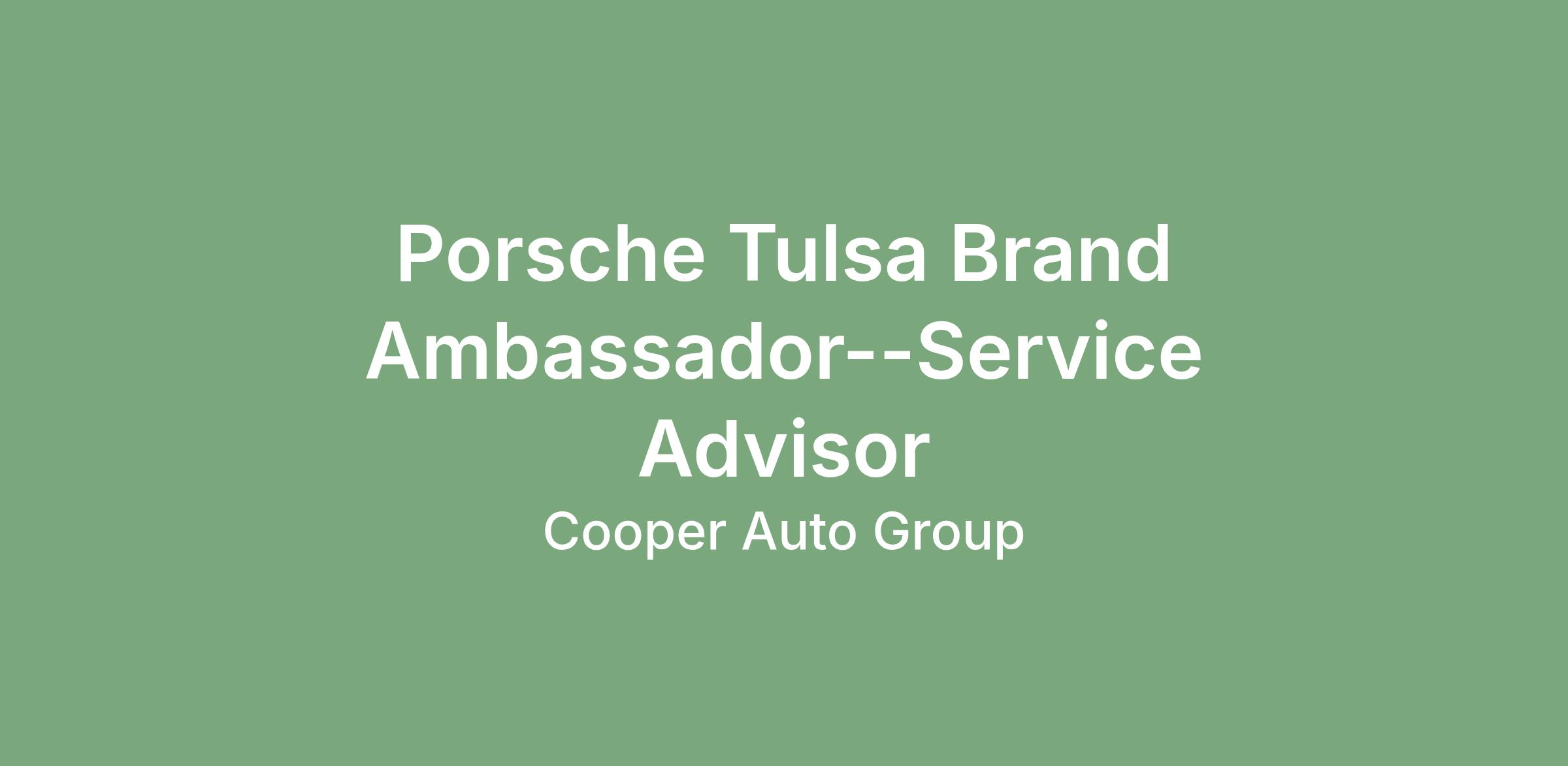 Join our team at Porsche Tulsa in Tulsa, Oklahoma as a Porsche Brand Ambassador--Service Advisor. We're looking for an experienced luxury-minded professional and customer-focused individual to serve as the primary liaison between our valued clients and our service department. In this role, you'll combine your automotive expertise with exceptional customer service skills to ensure a premium experience for Porsche owners.