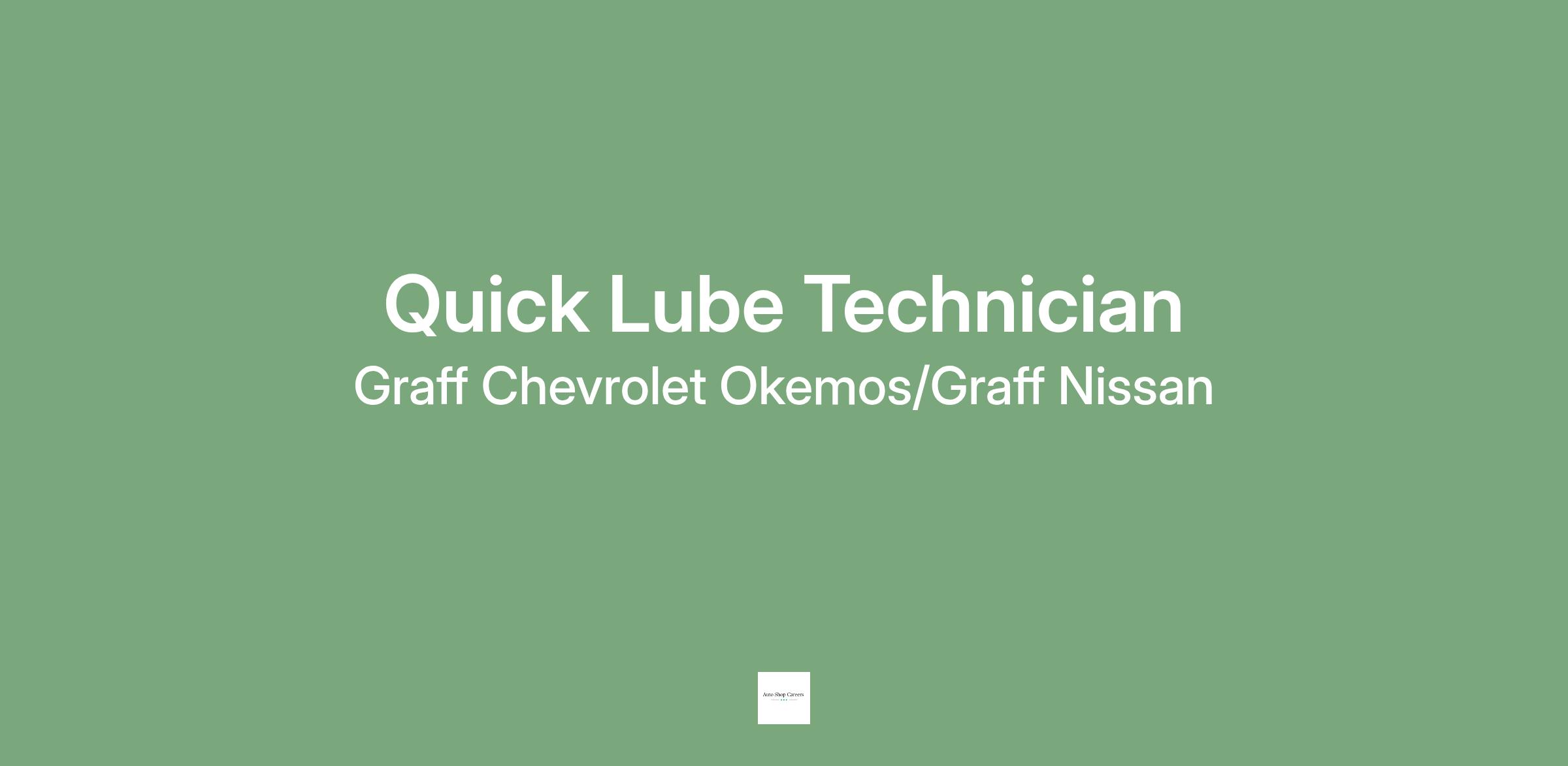 GRAFF CHEVROLET OF OKEMOS is expanding its service department. We are looking for an Experienced Quick Lube Technician with previous experience working in a dealership, quick lube, or independent garage. We offer competitive wage, weekly and monthly incentives, training, and advancement within our dealership. If you have what it takes dont hesitate, we are looking for you.