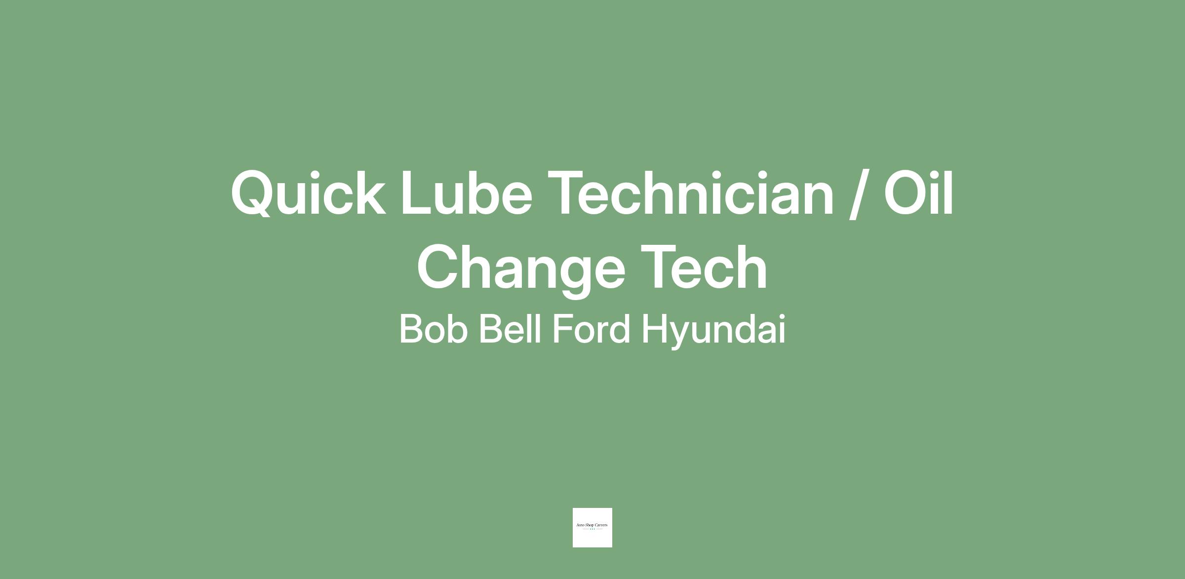 Job Title: Quick Lube Technician / Oil Change Tech – Bob Bell Hyundai