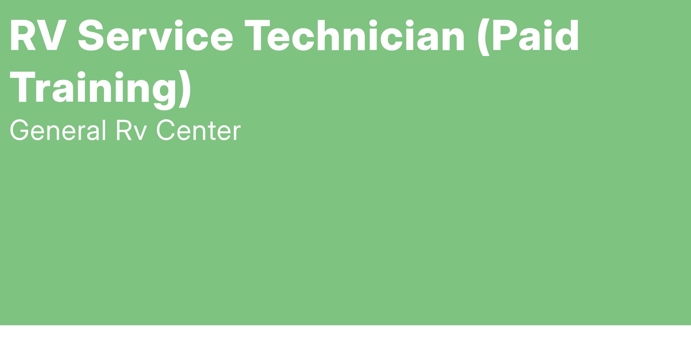 General RV offers a comprehensive benefits package that includes medical, dental, vision, life insurance options, paid vacations and a 401k with company matching.
