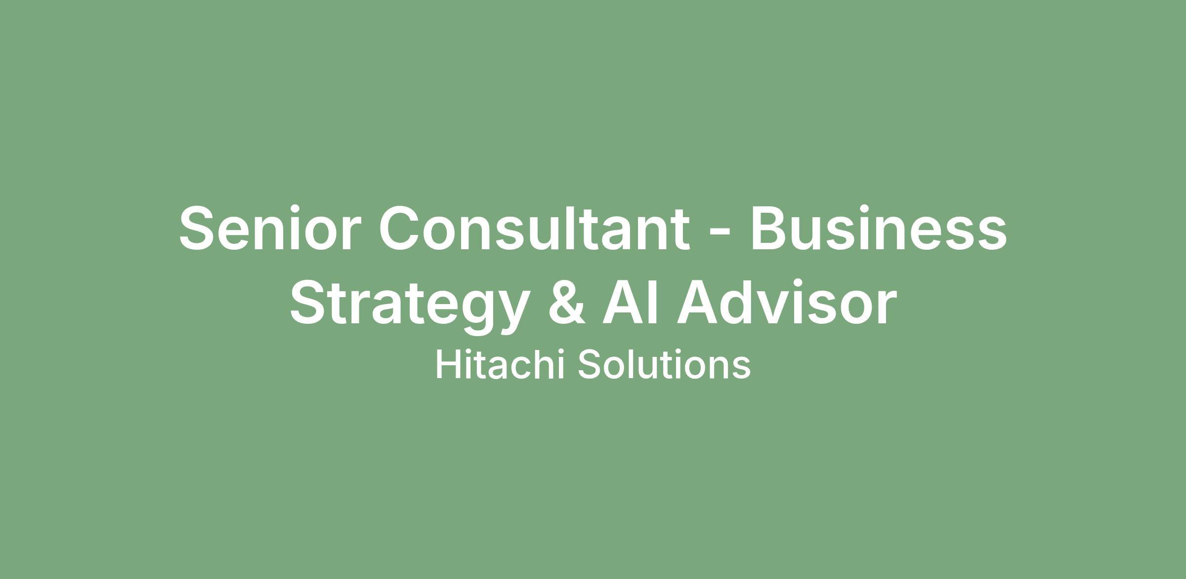 Clients are demanding clarity and confidence in their AI journeys. Hitachi has the technology stack and delivery capability—what’s needed is a dedicated leader within Advisory to align strategy, value, and adoption.
