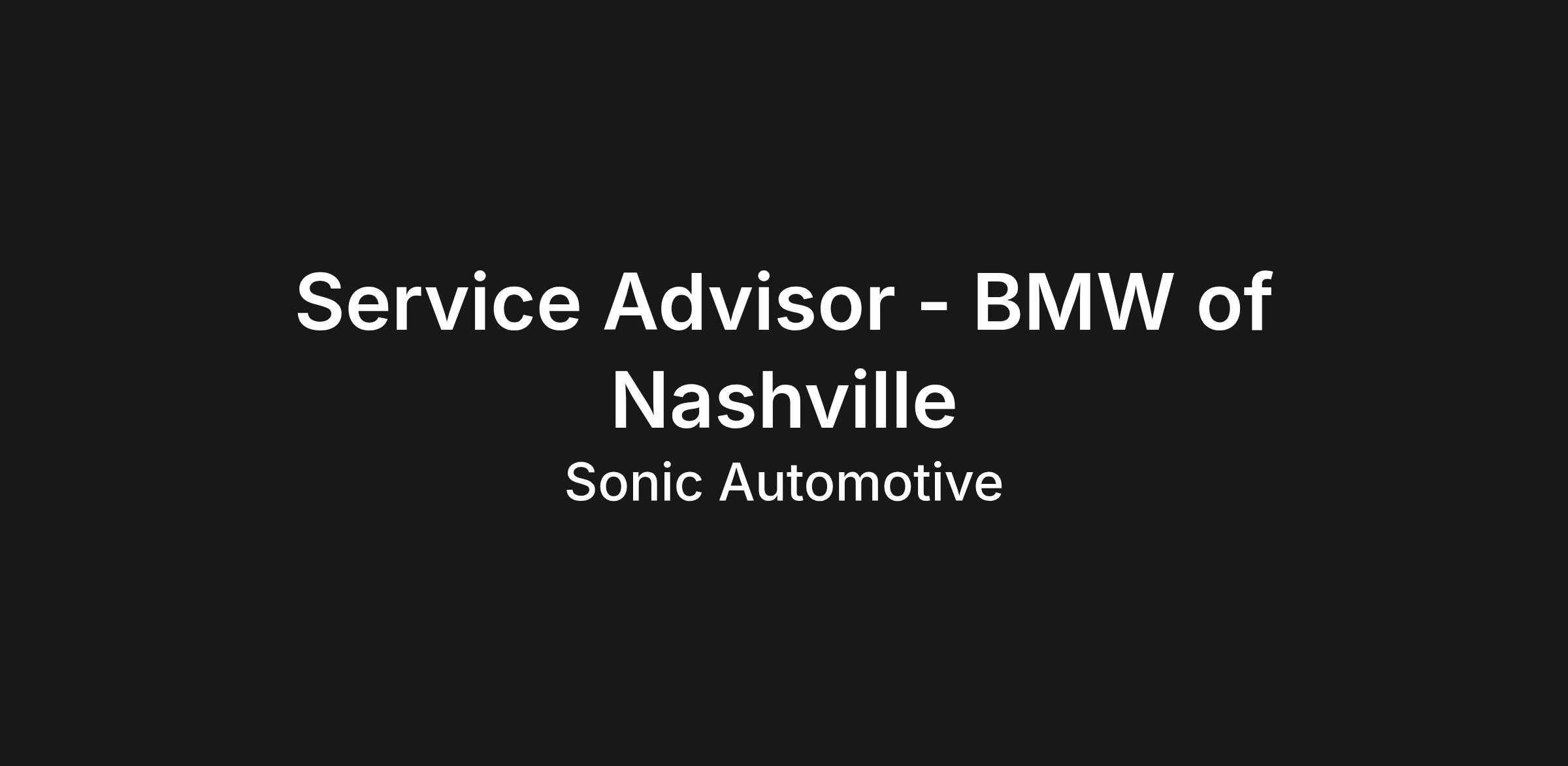 At BMW of Nashville , a Sonic Automotive family dealership, you'll find the opportunities, resources, and support you need to grow and develop professionally. Our 100+ dealerships are concerned with more than moving inventory; they're committed to your success and invested in your future. So read on, and consider a rewarding career with Sonic Automotive, Inc.