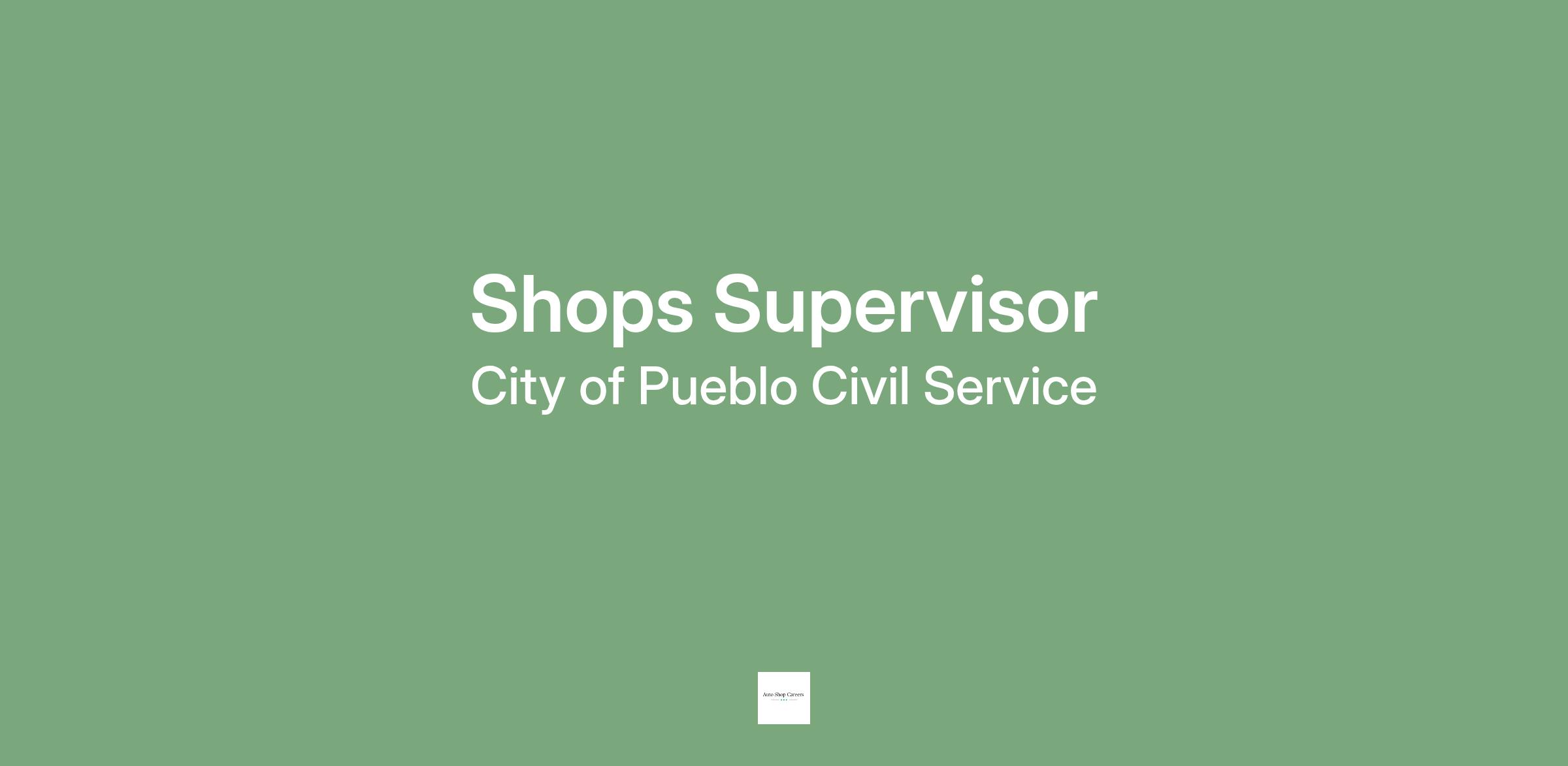 The City of Pueblo is looking for an experienced mechanic to be our next Shops Supervisor! As the Shops Supervisor, you will prioritize and coordinate repair and maintenance services of vehicles and equipment, supervise, evaluate, and participate in the work of employees, maintain and update repair and costs records and respond to emergency situations while on call. This full-time position offers you a variety of benefits that provide a great work/life balance, a fast paced work environment, and a competitive annual salary of $78,381.96 - $95,736.84. Apply now through November 12th, 2025. Click on Shops Supervisor for access to the complete job description and to apply today! Visit www.pueblo.us/jobs to see all City of Pueblo open positions.