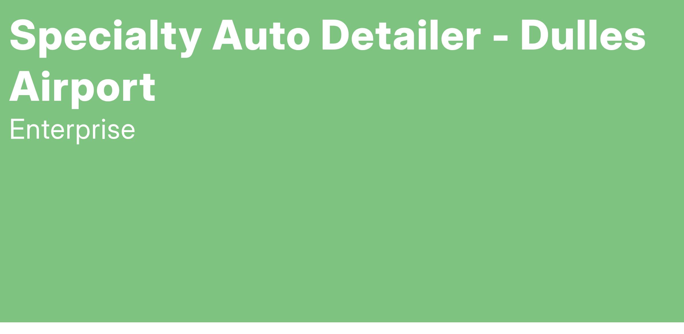 Enterprise Mobility is seeking a responsible, dedicated person to join our team as a full time Specialty Automotive Detailer. This position pays $20 / hour plus incentives and is located at Washington Dulles Airport (IAD) in Sterling, VA 20166.