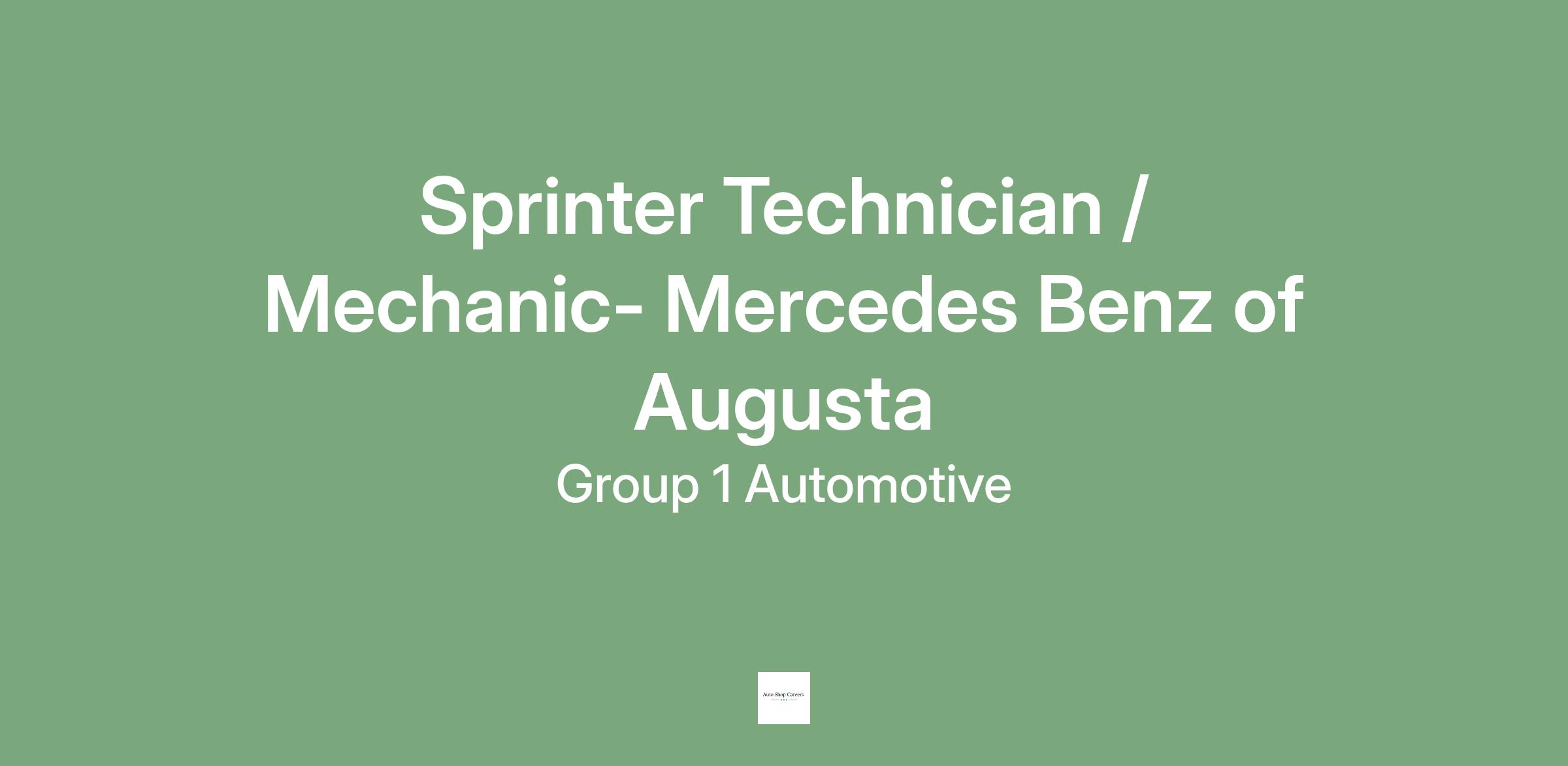 Mercedes-Benz of Augusta is part of the fast-growing Group 1 Automotive, a leader in automotive retail and service. We are growing and need to add Sprinter Technician/Mechanic,to our team! Are you an experienced Sprinter Technician ready to advance your career? Are you ready to work in a Technician focused environment with all the tools and support to maximize your earnings potential? If you answered yes than we want to meet you! You have several ways to apply so apply now!
