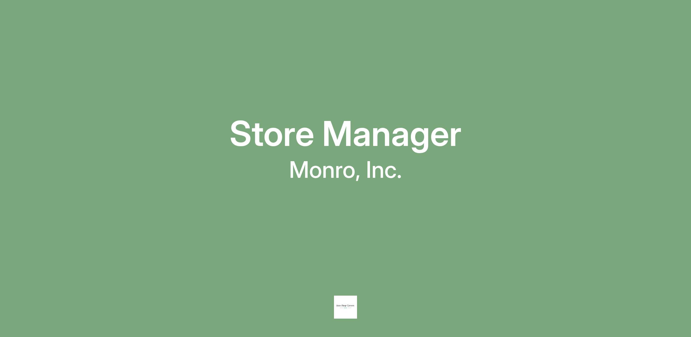 The Store Manager position is a salaried role. The Store Manager provides daily leadership to all positions within the store to include General Service Technicians, Technicians, Guest Care Specialists, and Assistant Store Manager. Reporting to the District Manager, the Store Manager is responsible for providing the day-to-day leadership to the store and teammates, including selecting, coaching, and developing store teammates. This position supports Monro’s vision to be America’s leading auto and service tire service centers, trusted by our guests as the best place in their neighborhoods for quality automotive service and tires by promoting products and services to guests.