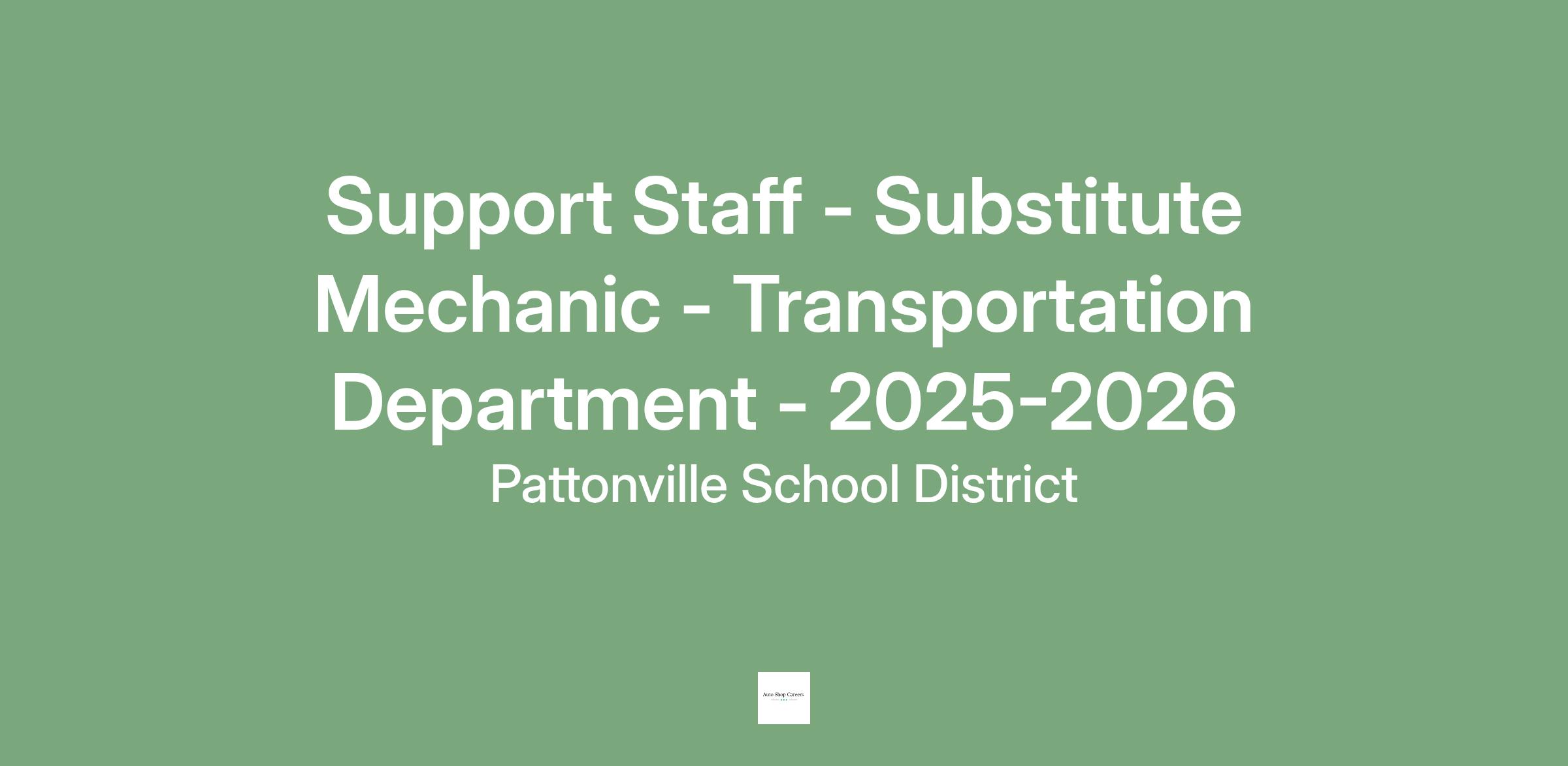 Description: Support Staff - Substitute Mechanic - Transportation Department