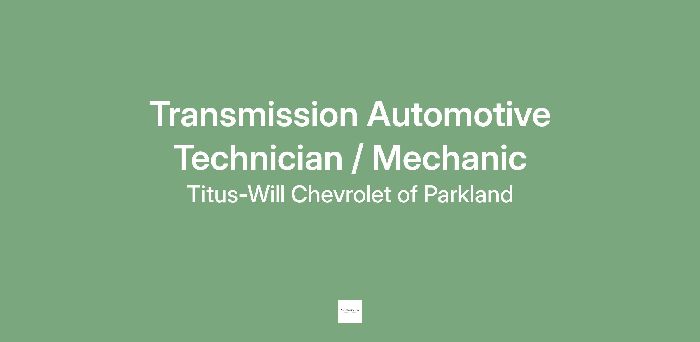 We are Titus-Will Chevrolet in Tacoma/Parkland! Titus-Will is a trusted, family-owned and operated business since 1938. Many of our employees have made a career of working on our team. We are seeking experienced Transmission Technicians looking for a fun, friendly, and professional working environment. Must be self-motivated and have a good attitude towards customers and co-workers. This job requires personal tools and a willingness to learn and grow.Â